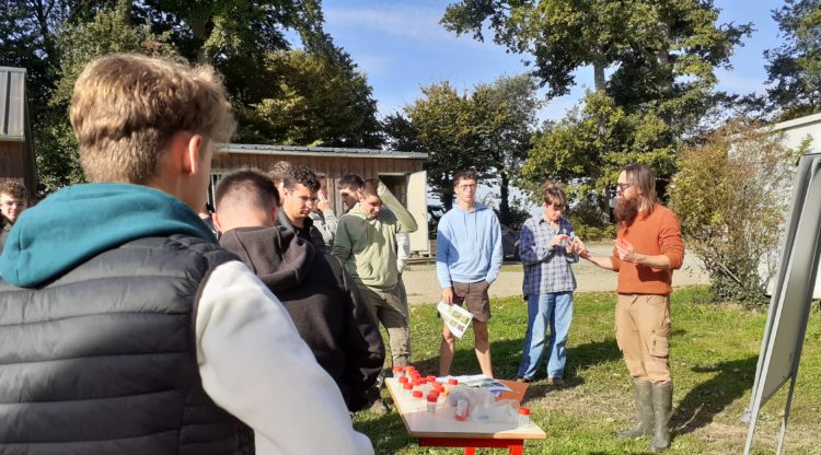 Le Jeudi 02 octobre, Michaël et Camila, nos encadrants techniques ont reçu deux groupes d’étudiants provenant du BPREA au Rheu et du BTS Horticole de Dol-de-Bretagne, soit 70 participants. Cette visite habituellement organisée lors du Salon « La Terre est notre métier », fut animée en partenariat avec Jérémy, le Technicien Maraîchage d’Agrobio 35.