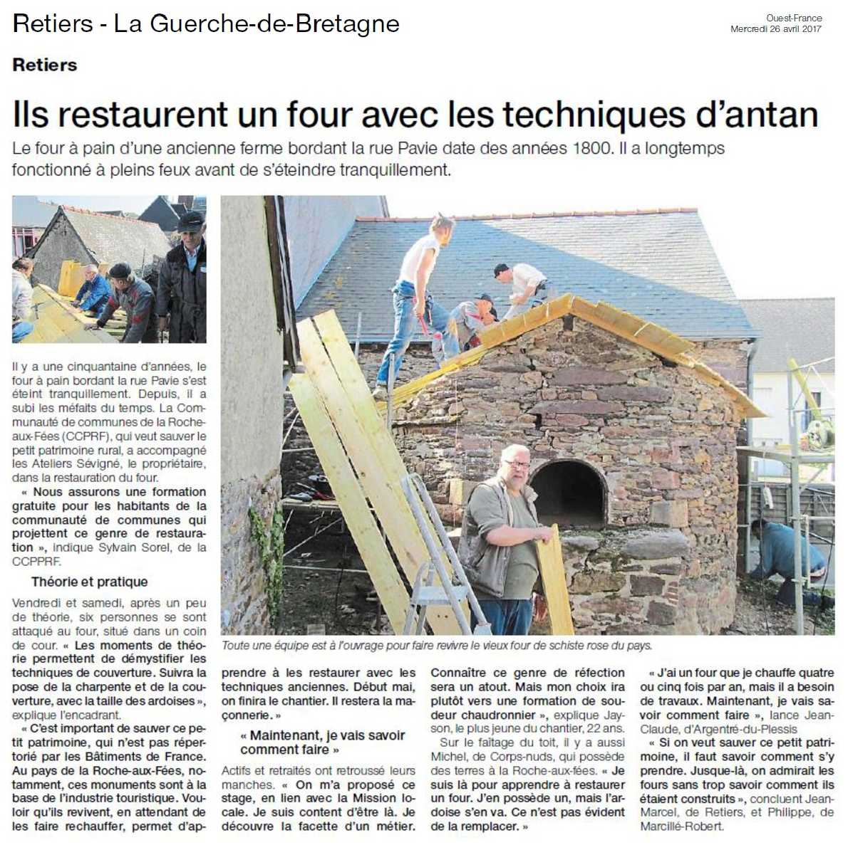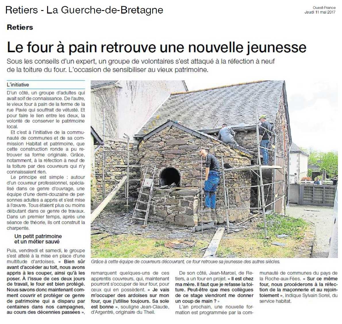La Communauté de communes Au Pays de la Roche aux Fées a fait le choix de soutenir l’Association Sévigné en l’accompagnant dans la restauration de son four à pain, situé en centre-bourg à Retiers. Ce chantier est coordonné par Terroir Bâti.
