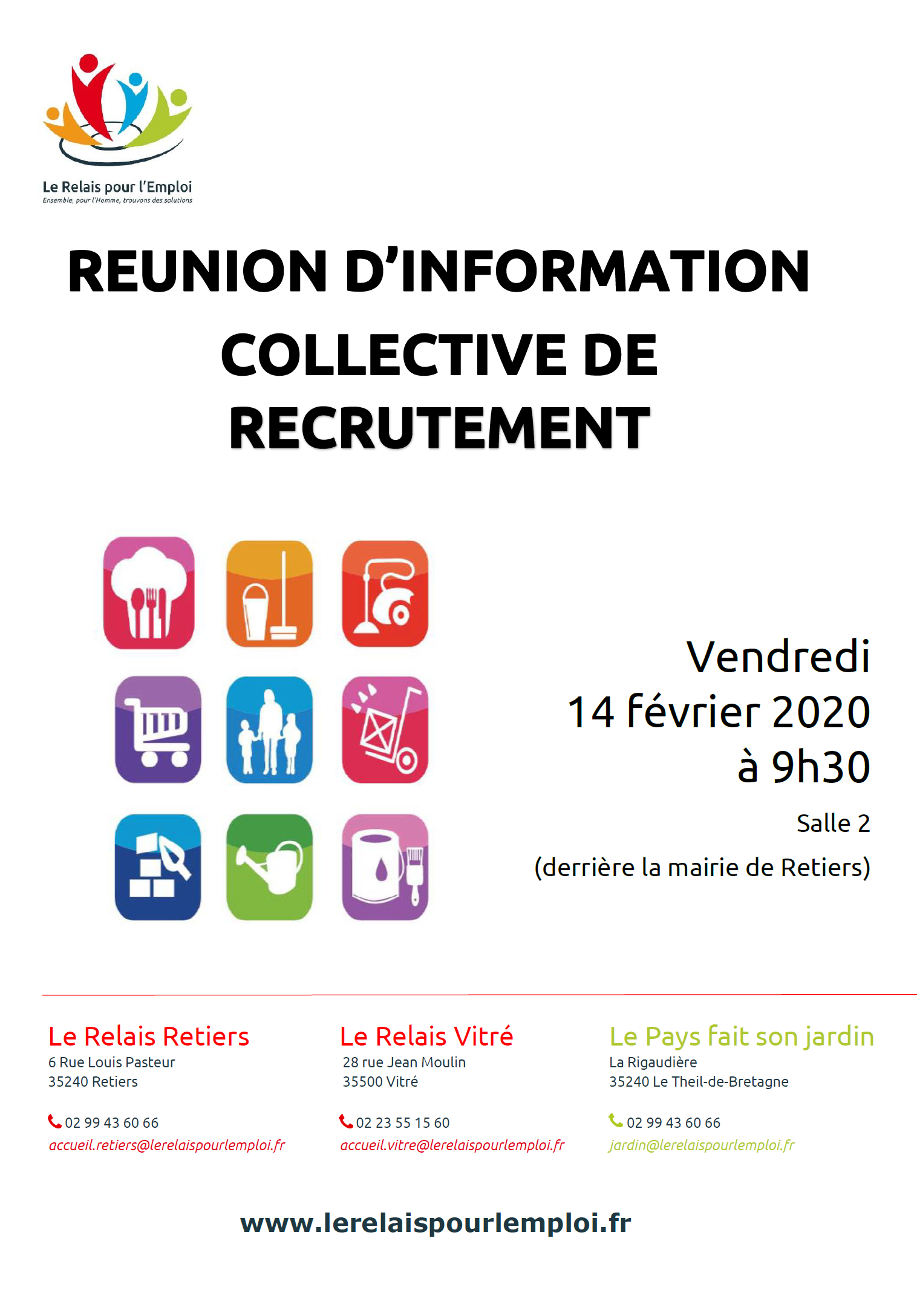 N’oubliez pas l’information collective à Retiers vendredi 14/02/2020 à 9h30 (derrière la mairie) sur nos postes à pourvoir.